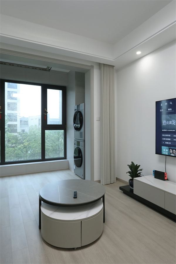 陽臺與客廳相連,拆除原有的移門設計,空間上顯得更加統一。