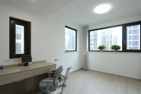 原始戶型上的北陽臺空間,被改造為一個三面帶窗的房間,因其朝北,因此暫時作為孩子的學習房。