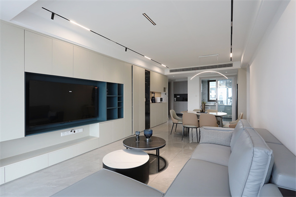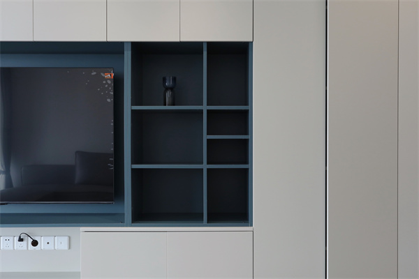 電視墻柜排列有序的線條,鋪就的是精致的生活氛圍。