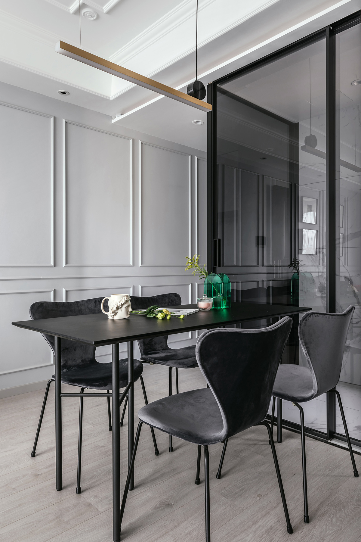 餐廳整體采用時(shí)尚經(jīng)典的黑灰色,簡(jiǎn)約而大氣。
